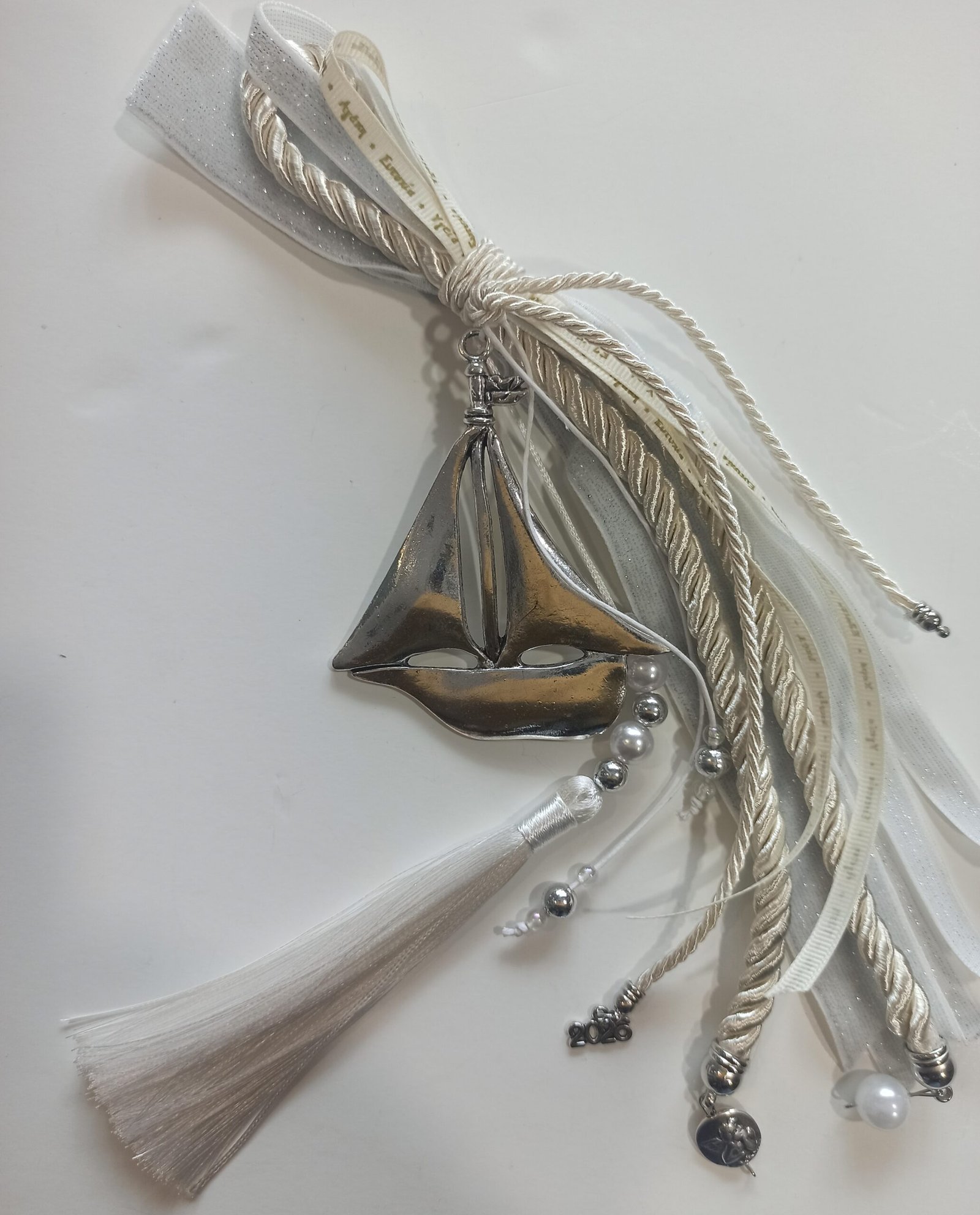 Γούρι με ασημένιο μεταλλικό καραβάκι