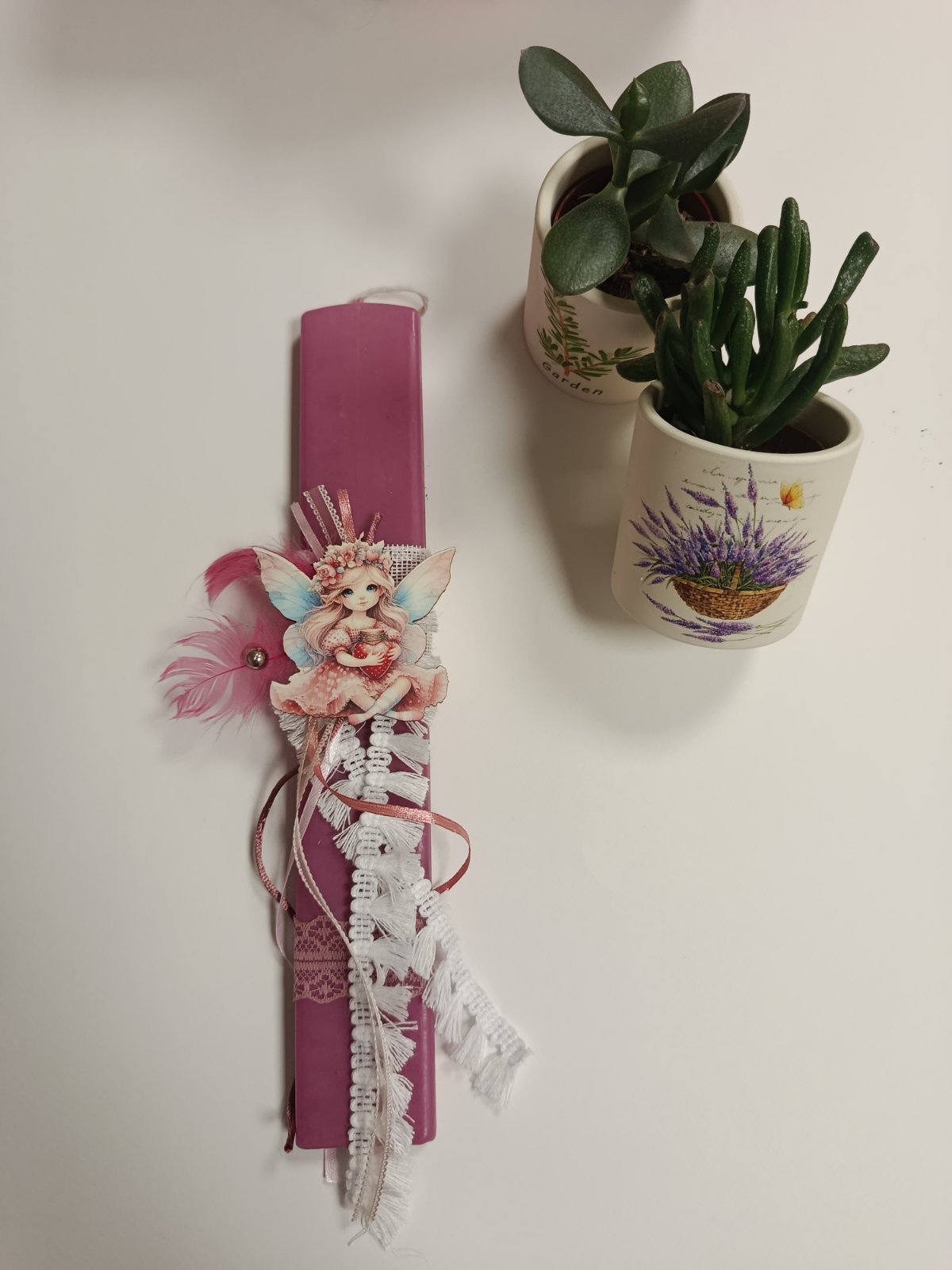 • Λαμπάδα λευκή πλακέ για κορίτσι με πορτοφολάκι