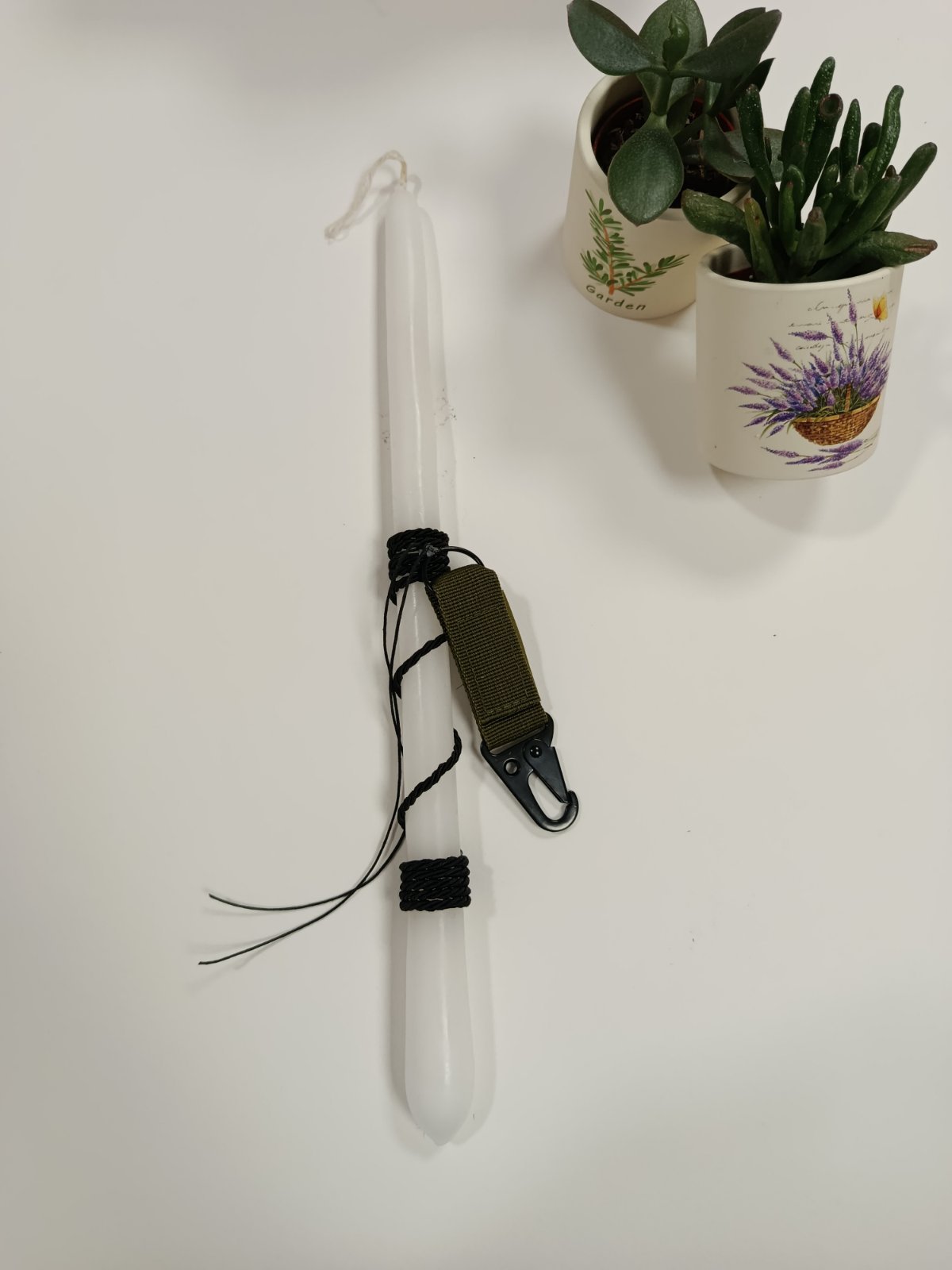 Λαμπάδα λευκή με μαύρο μπρελόκ