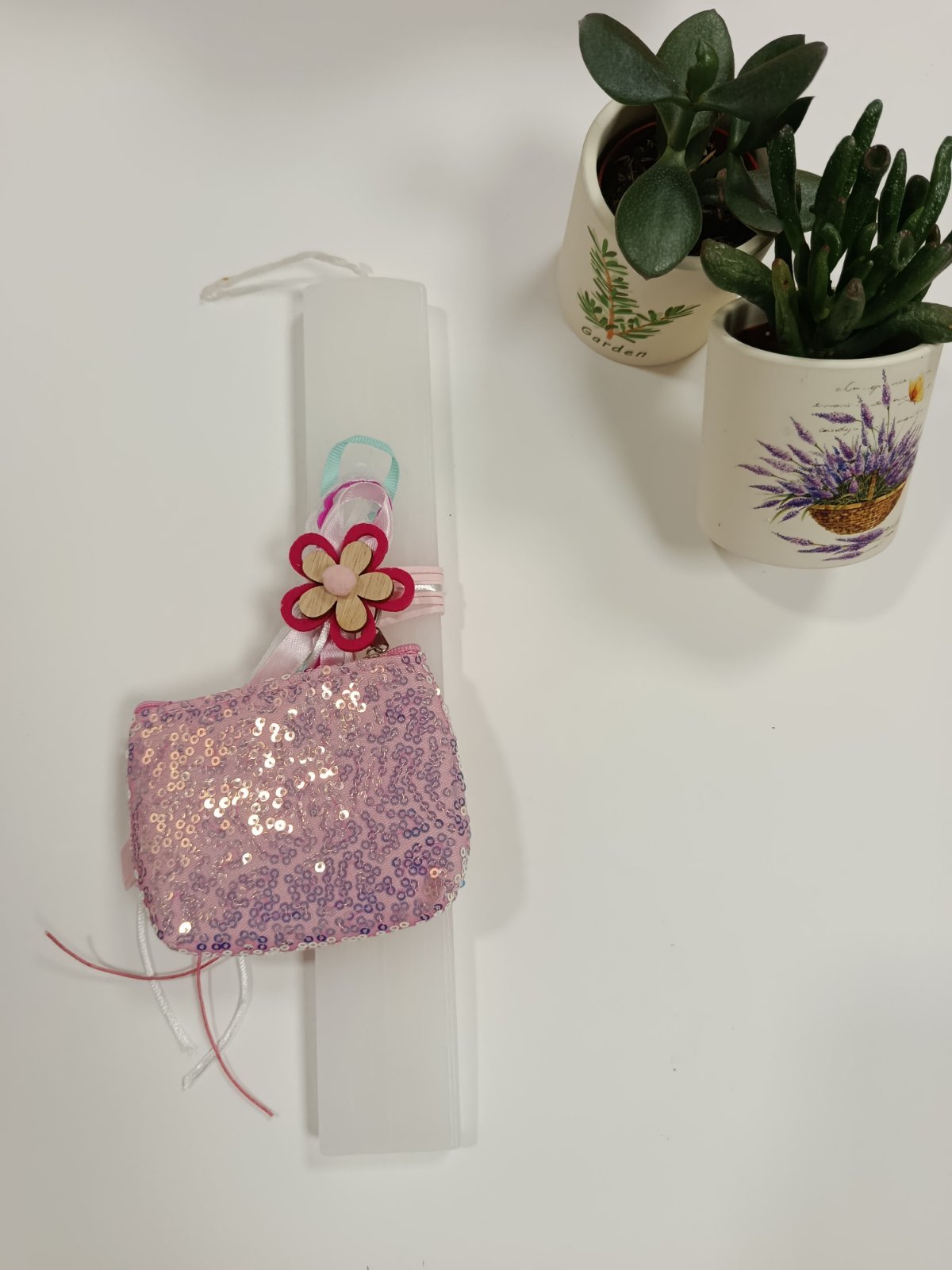 HomeShopΕποχιακάΛαμπάδα λευκή πλακέ για κορίτσι με πορτοφολάκι