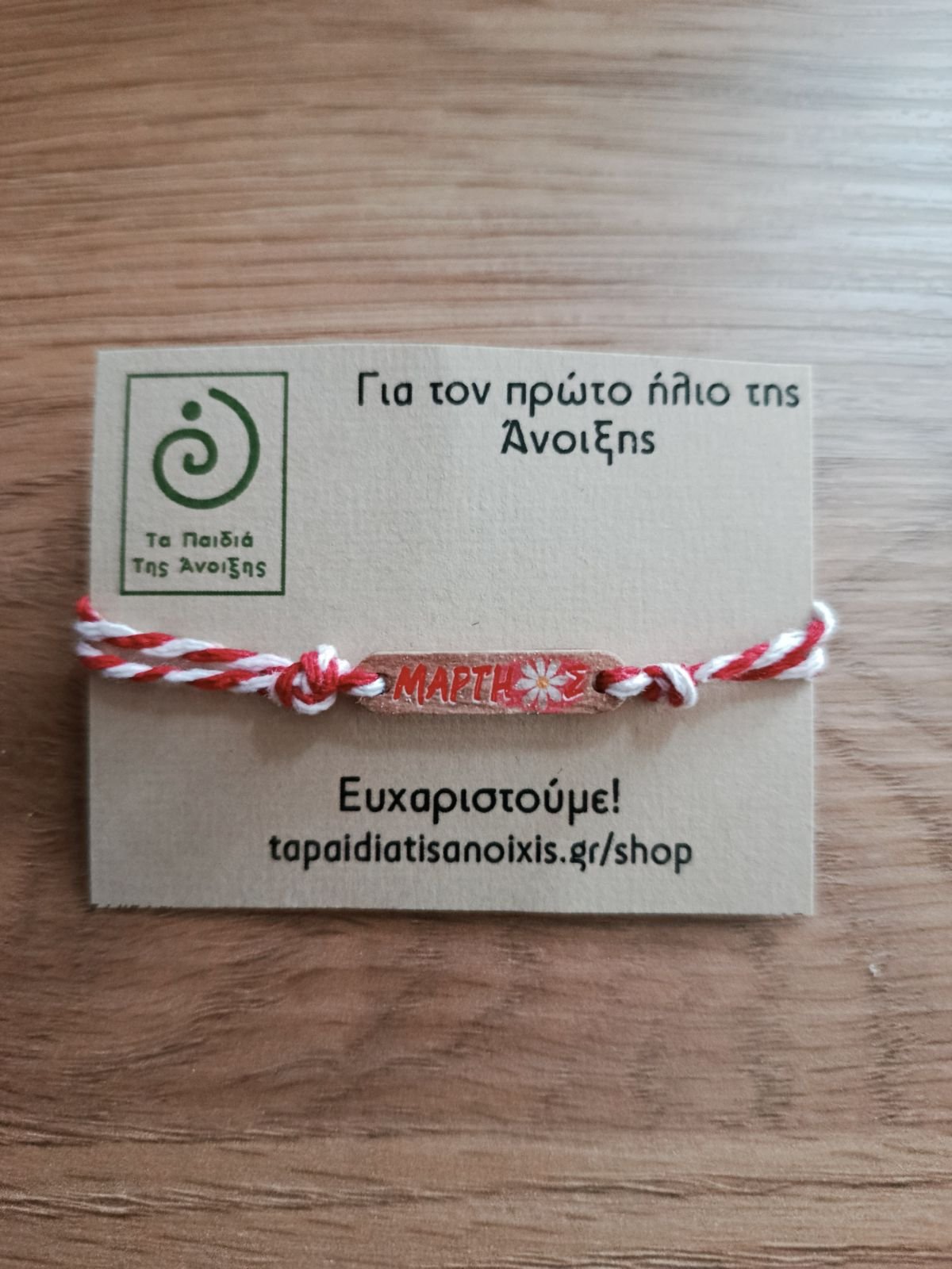 Ξύλινος Μάρτης με ζωγραφισμένη Μαργαρίτα
