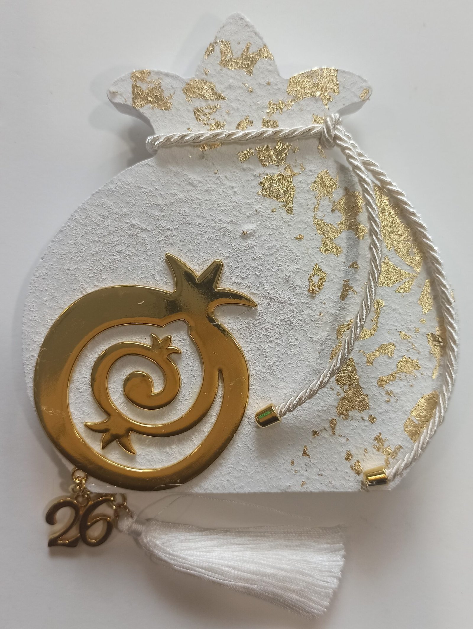 Ξύλινο ρόδι με μεταλλικό στοιχείο λευκό